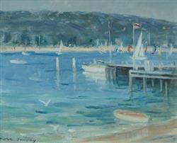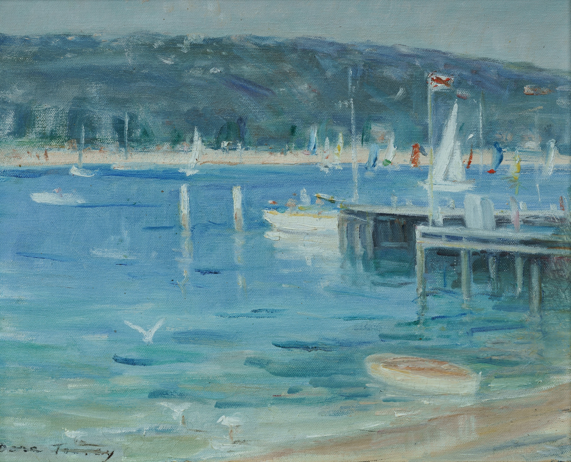TOOVEY, Dora (1898-1986) 'Saturday Afternoon at the Spit' Signed lower left. Oil on Canvas on Board 29.5x36.5cmEstimate $250-450