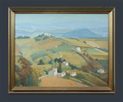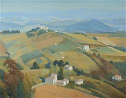 DUNDAS, Douglas Robert (1900-1981) 'Tuscan Panorama,' 1975. Signed lower right. Oil on Canvas 69.5x90cm PROVENANCE: Mr & Mrs Peter Marshman; thence by descent. EXHIBITIONS: Douglas Dundas Retrospective, Art Gallery of New South Wales, Sydney, 29th May - 4th July 1982, cat #66 (label verso)Estimate $2,000-4,000