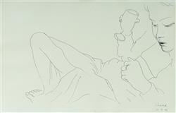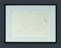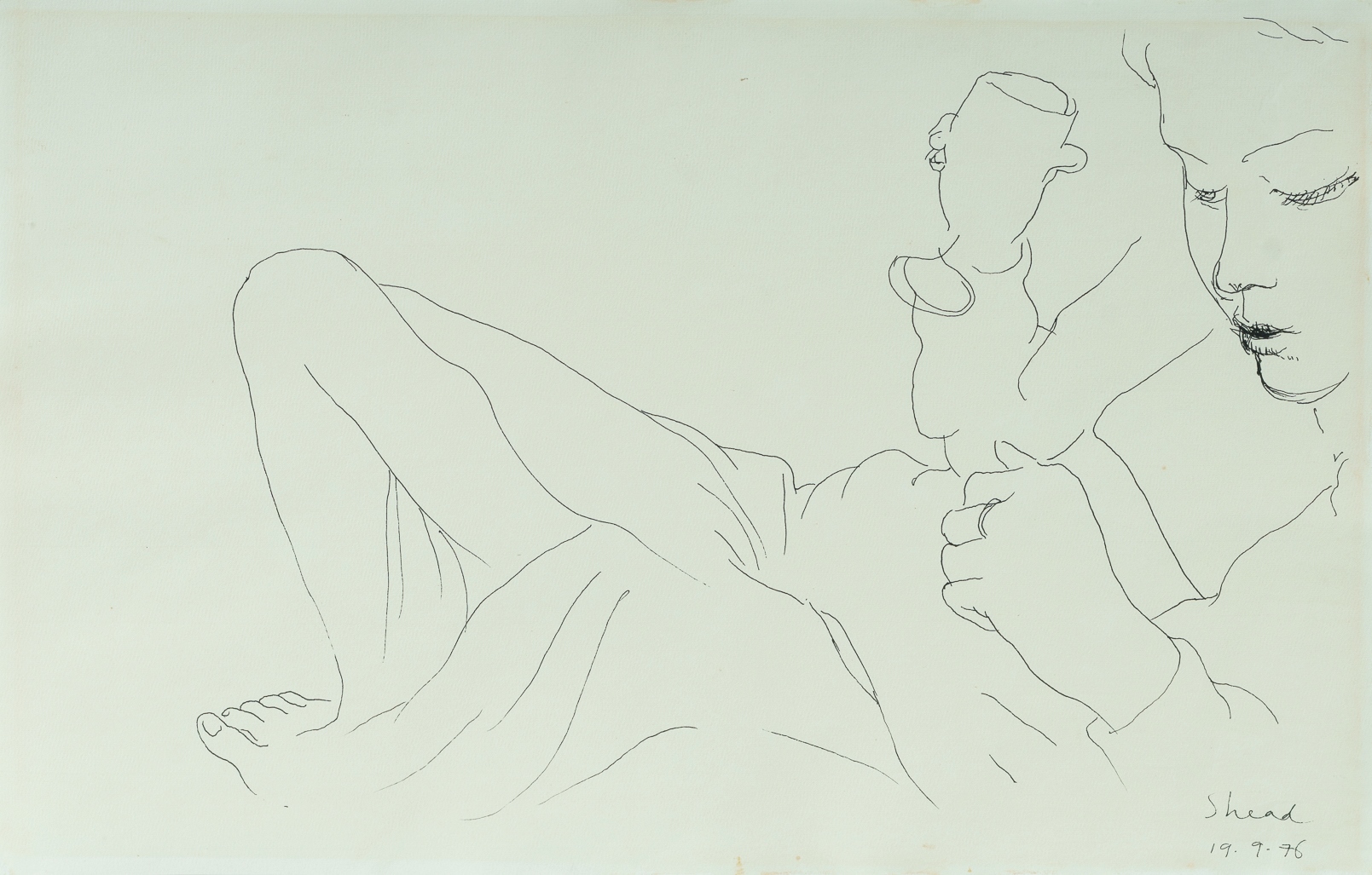 SHEAD, Garry (b.1942) 'Girl Reclining,' 1996. Signed lower right. Pen & Ink 30.5x47.5cm (sheet) PROVENANCE: Elder Fine Art, Adelaide, 1st May 2022 (lot 306); private collection, NSW.Estimate $300-500