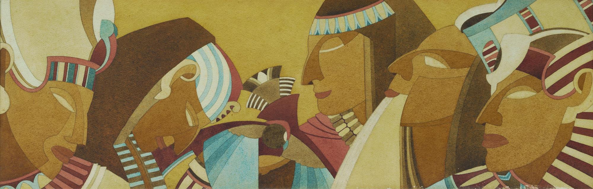 Artist Unknown Egyptian Profiles, c.1920s/30s. W/Clr 26.5x81cm PROVENANCE: Estate Late Frederick & Elizabeth Koch.Estimate $200-400