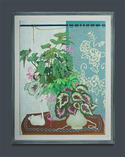 JESSUP, Fred (1920-2007) 'Begonia Crochet' Signed lower right. Oil on Canvas 130x97cmEstimate $1,800-3,500