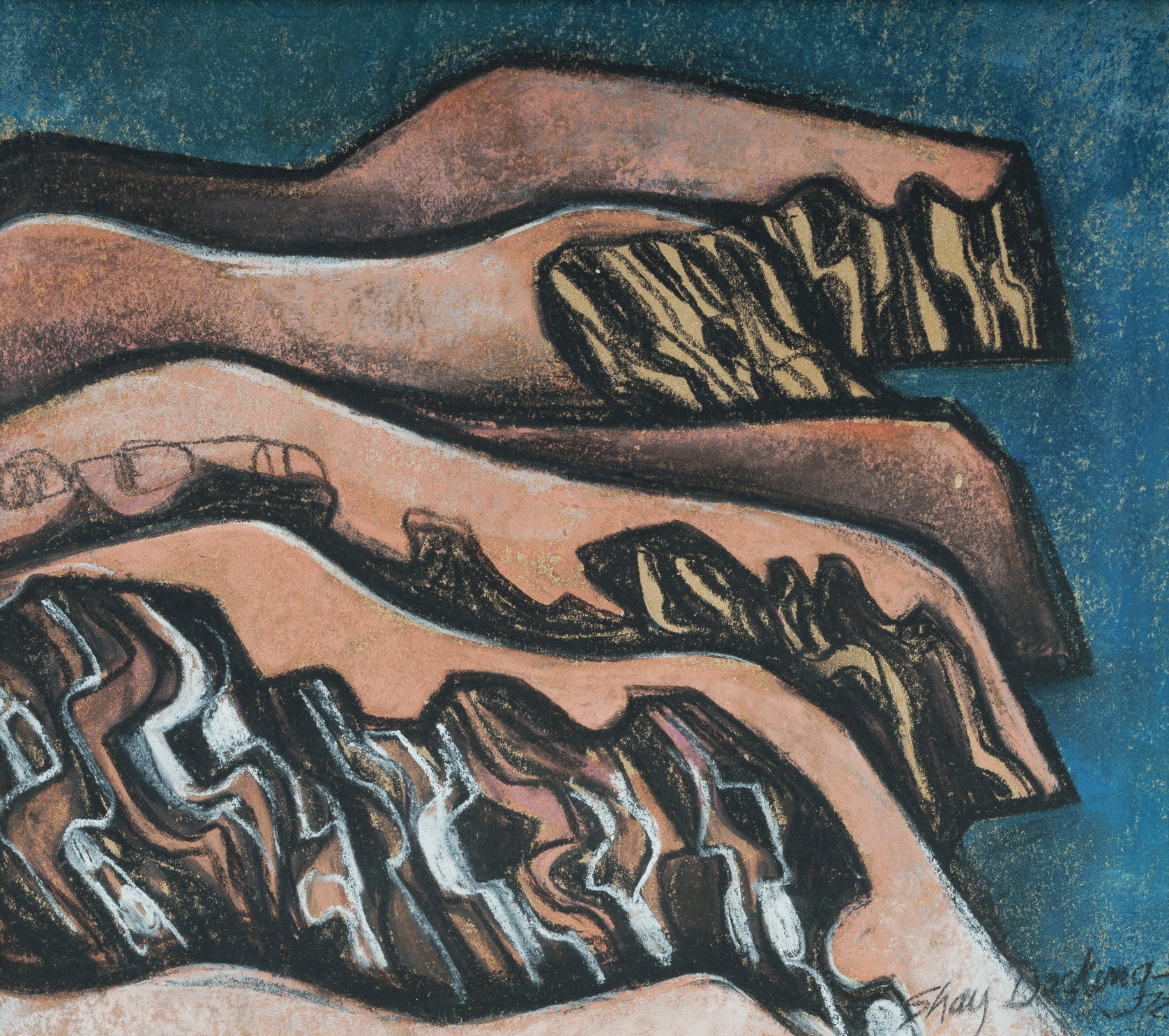 DOCKING, Shay (1928-1998) 'South Seas Landscape,' 1972/4. Signed lower right and inscribed verso. Pastel 22x25.5cmEstimate $200-400