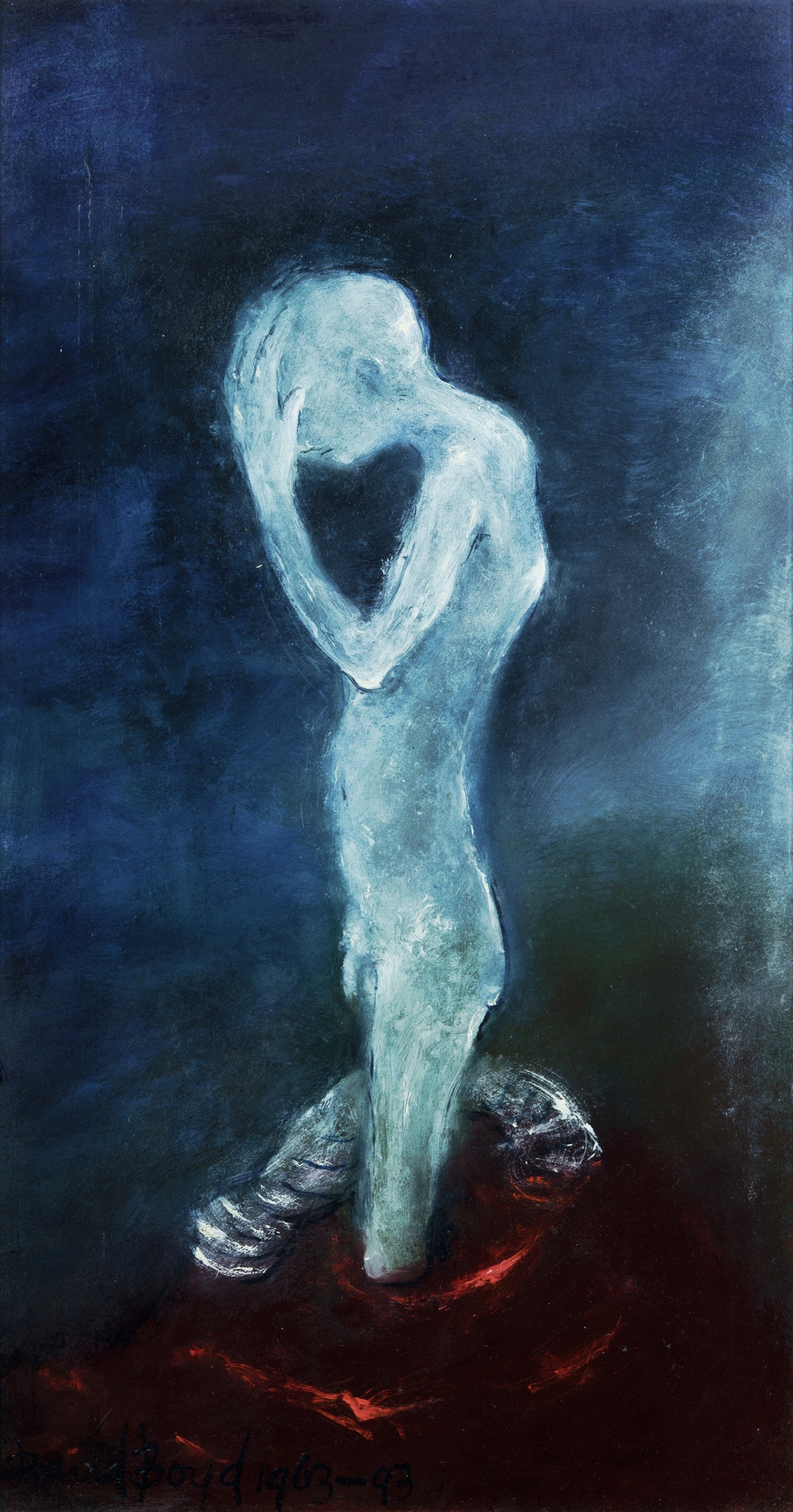 BOYD, David (1924-2011) 'Naked Judge,' 1963-93. Signed lower left. Oil on Board 90.5x47.5cmEstimate $2,000-3,000