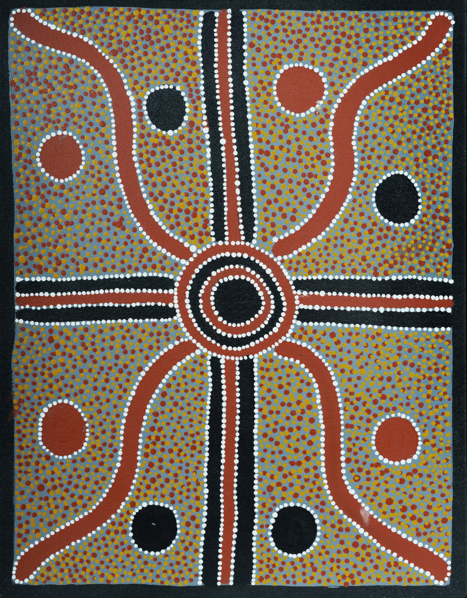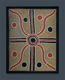 JUNGALA, Paddy Bird Aboriginal born c.1955) Untitled Signed verso. Acrylic on Canvas 62x49cm PROVENANCE: Collection Rev. Dr Arthur Bridge AM OAM.Estimate $150-250