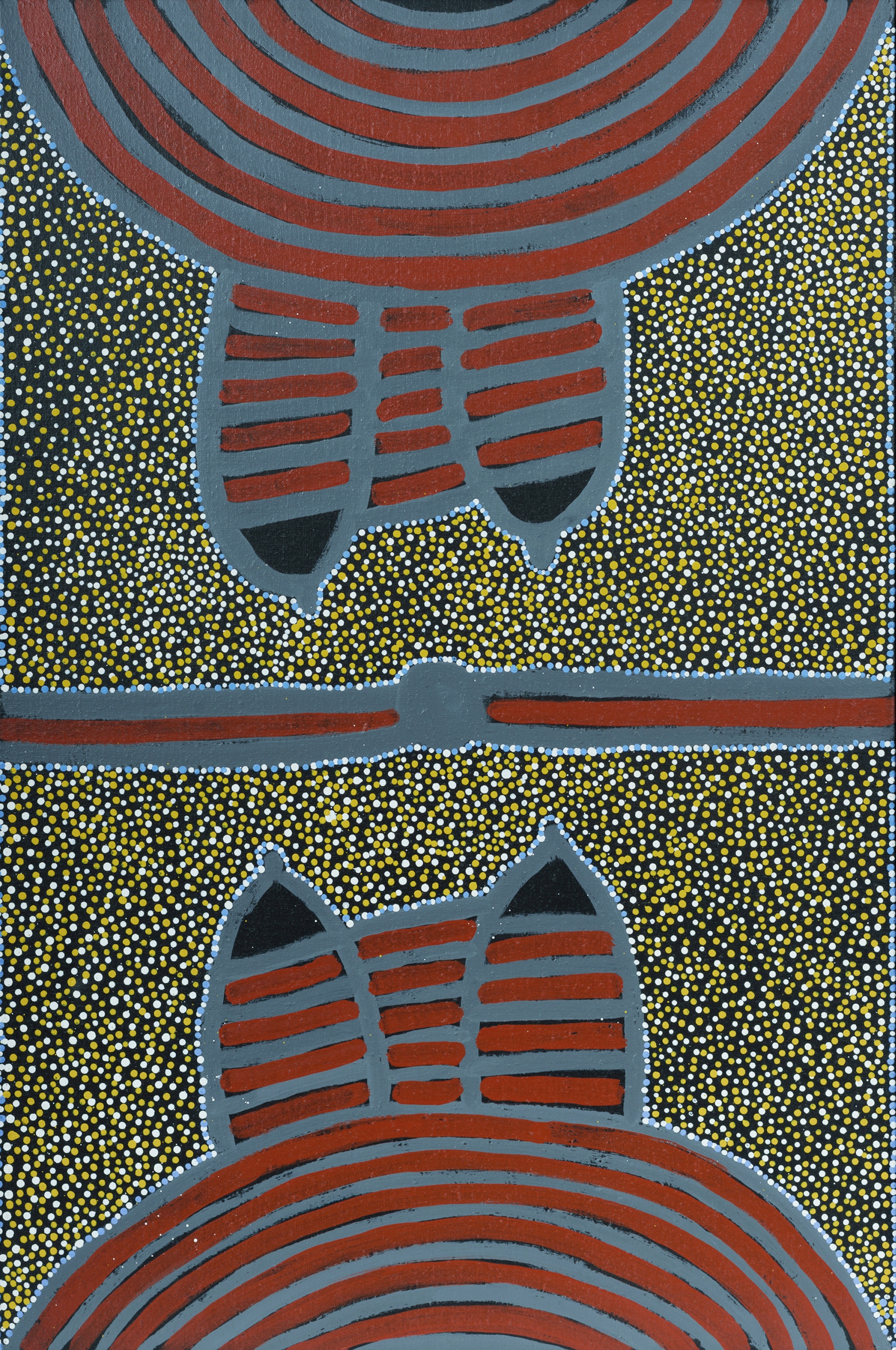 PETYARRE, Ada Bird (Aboriginal c.1930-2009) Awelye (Mountain Devil Lizard) Signed 'Ada' verso. Acrylic on Linen 91x60cm PROVENANCE: Mbantua Gallery, NT cat #MB8974B; Collection Rev. Dr Arthur Bridge AM OAM.Estimate $400-600