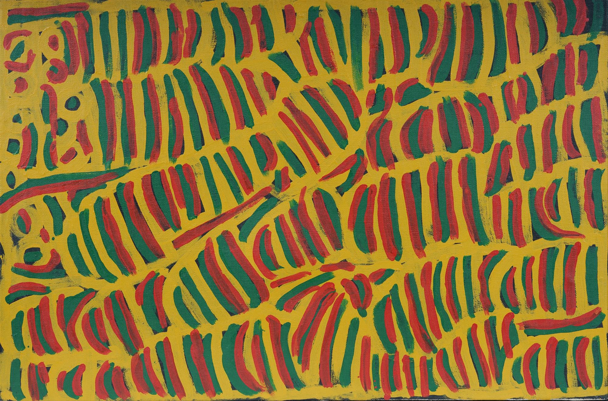 Aboriginal School, Artist Unknown Untitled Acrylic on Linen 91x60cm PROVENANCE: Collection Rev. Dr Arthur Bridge AM OAM.Estimate $150-300
