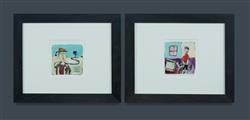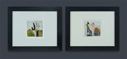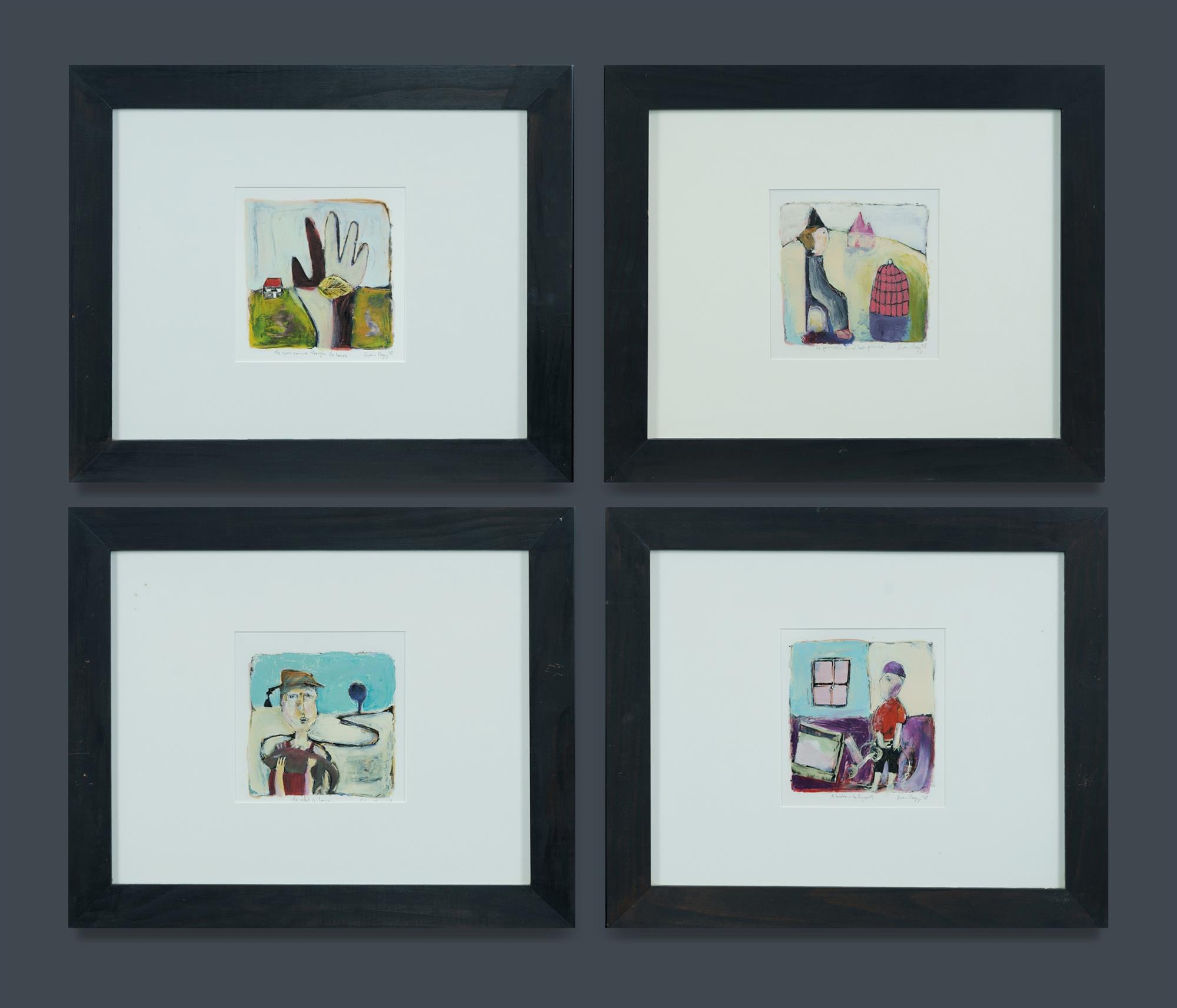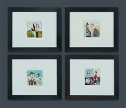HEGYI, Evan (b.1994) (4) 'The Sun Came Through the Leaves', 'The Princess and Her Prince', 'A Broken Billycart', and 'The Road is Long,' 1998. Each signed lower right. Oil on Paper 14x14cm image (approx)Estimate $200-400