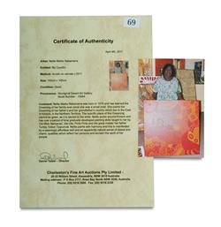 PROVENANCE: Aboriginal Desert Art Gallery (stock #15464); Charleston's Fine Art Auctions, Sydney (certificate of authenticity included); private collection, NSW.