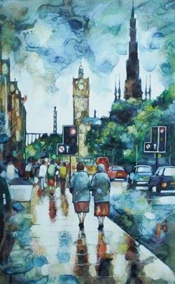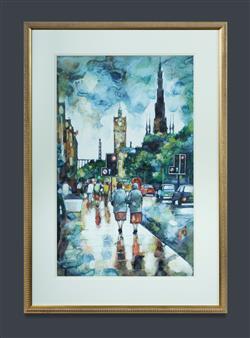 EVANS, Bryan (British b.1964) 'Princes Street [Edinburgh] after the Rain' Signed lower right. W/Clr 65x40.5cm PROVENANCE: Macmillan Cancer Relief Art Exhibition, Glasgow; Collection Mr H & Mrs P Wallace, Sydney.Estimate $100-300