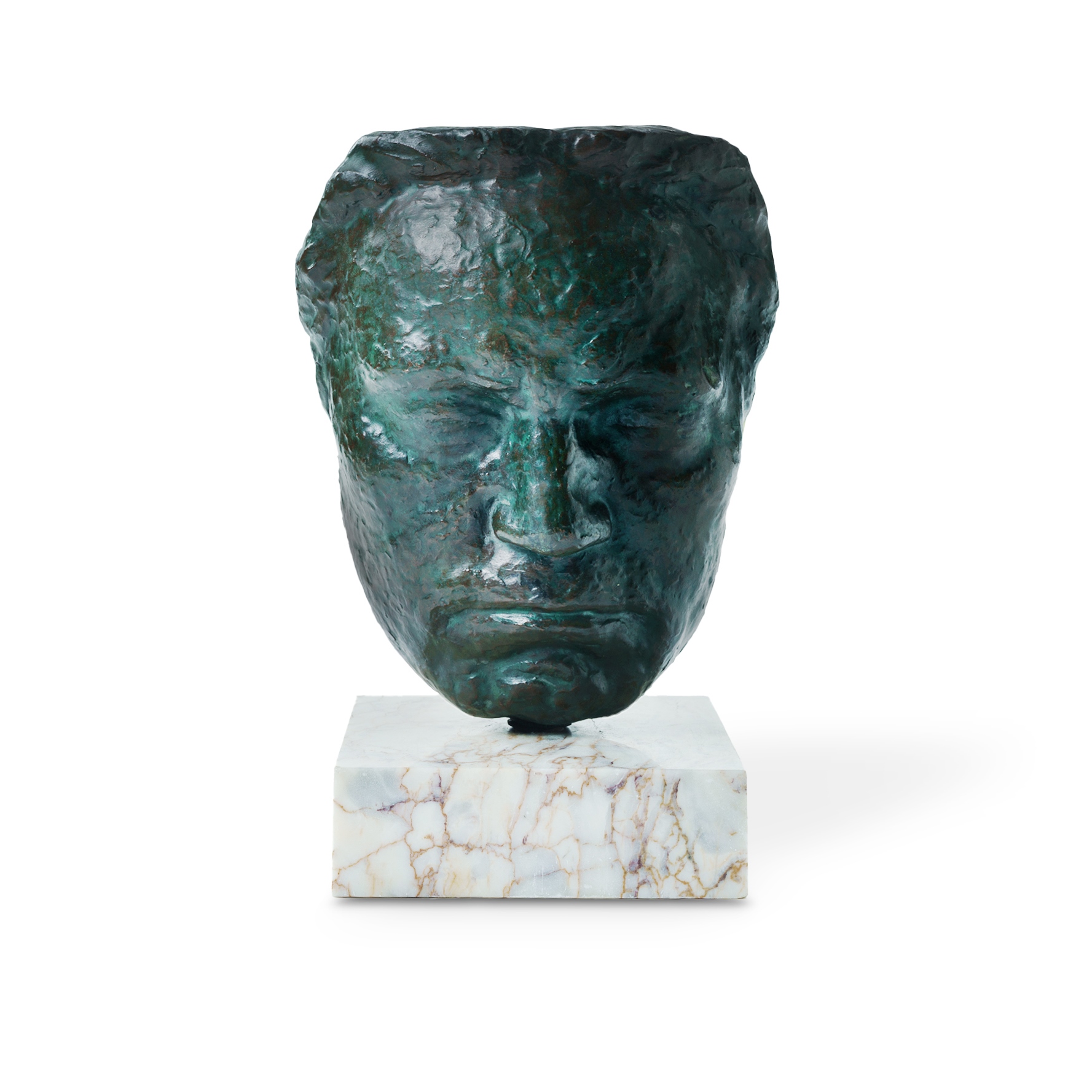 FLEISCHMANN, Arthur (1896-1990) Bronze Mask, Beethoven. Moulded initials to side 'A.F.' on marble base. Another example in the collection of the Art Gallery of NSW. H29cm (overall) H24.5cm (bust) W20cm D11.5cmEstimate $600-800