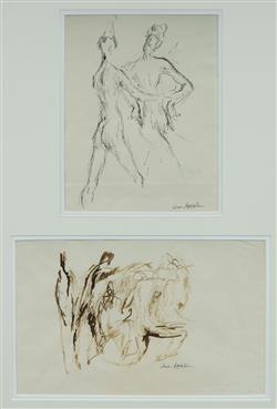 APPLETON, Jean (1911-2003) Two drawings in one frame: Figures Wearing Hats (23x18cm); and Group Study (18x29cm) Both signed lower right. Pen & Ink PROVENANCE: Jean Appleton, NSW; private collection, ACT, by descent from the above.Estimate $100-200