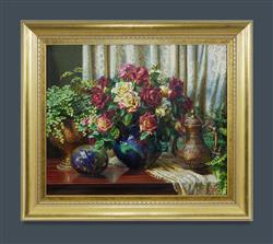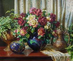 MORTON, Ann (b.1958) 'Double Delight,' c.2016. Signed lower right. Oil on Canvas 75x90cm PROVENANCE: Milk Factory Gallery, Bowral NSW 'Paint & Clay,' November - December 2016; private collection, Sydney.Estimate $2,000-4,000