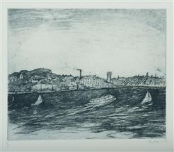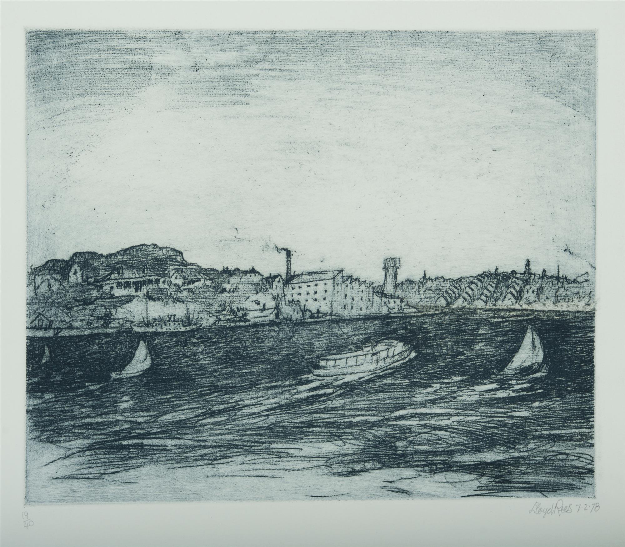 REES, Lloyd (1895-1988) 'Wind on the Harbour,' 1978. Signed lower right. The work is hinged into archival window mount, with The Art Gallery of Western Australia inward loan label verso. Soft-Ground Etching 19/40 25x30cm (plate) 55x47.5cm (mount)