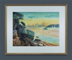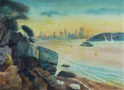 SANTRY, John (1910-1990) Sydney Harbour from Mosman Bay Signed lower right. W/Clr 55x74cm PROVENANCE: Lawsons, Sydney, September 10th 2015 (lot 543); Collection of Jim Haynes OAM and Robyn McMillan.Estimate $500-800