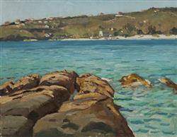 ASHTON, Will (1881-1963) 'Clontarf from Chinaman's Beach - Middle Harbour [Sydney]' 1944. Oil on Canvas 34x44cm PROVENANCE: Private collection, Adelaide; Elder Fine Art, Adelaide, May 19th 2024 (lot 101); Collection of Jim Haynes OAM and Robyn McMillan.Estimate $800-1,500