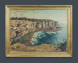 GRIEVE, Alan (1910-1970) 'Coastal Morning,' c.1956. Signed lower right. Old label verso. Wynne Prize Finalist, Art Gallery of NSW, 1956. Oil on Canvas on Board 91x121cmEstimate $500-800