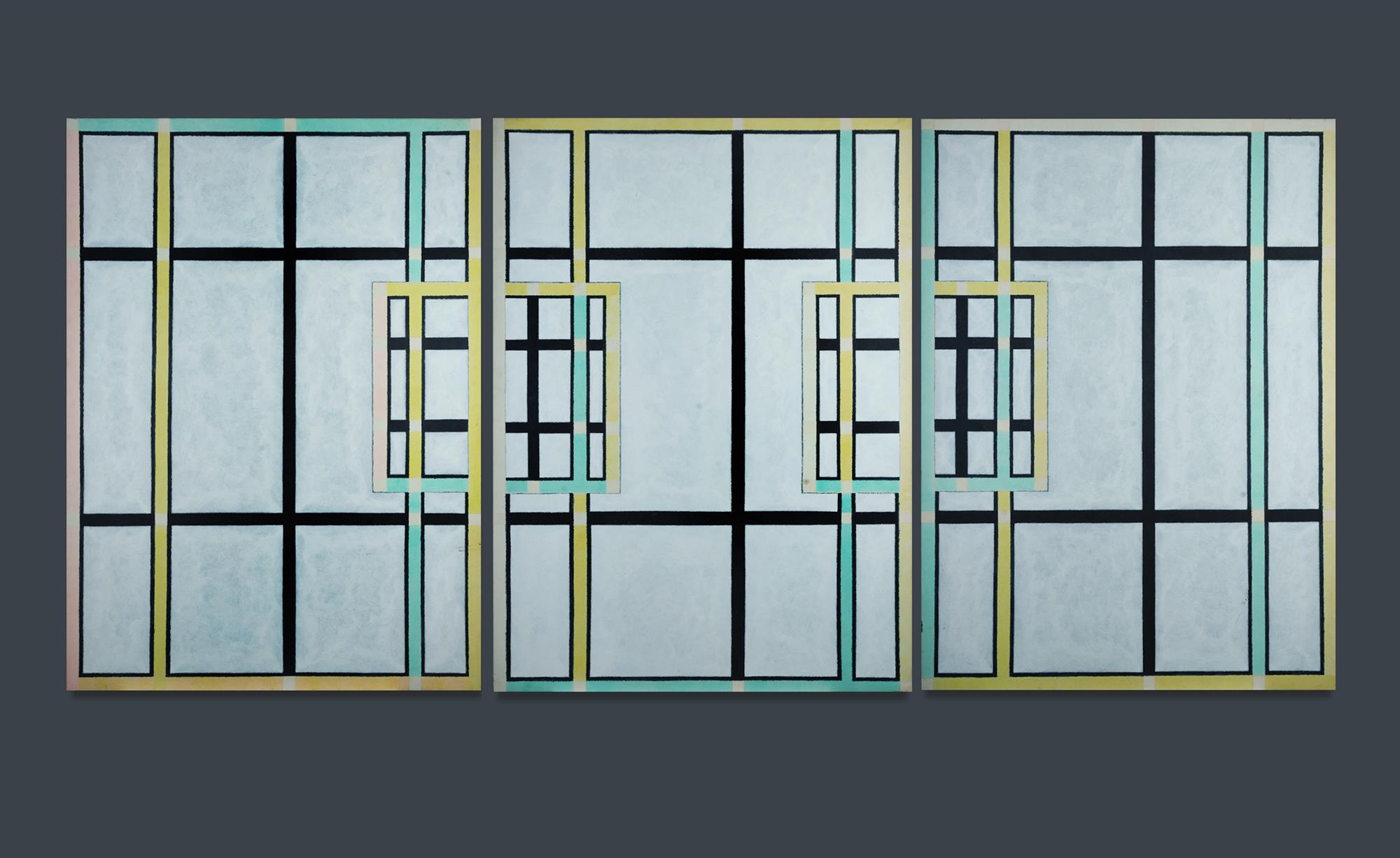 PLAPP, Jon (1938-2006) 'Until is and shall be [Triptych]' 1991. Signed and inscribed verso. Acrylic on Canvas 168x122cm (each panel) 168x366cm (overall)Estimate $4,000-6,000