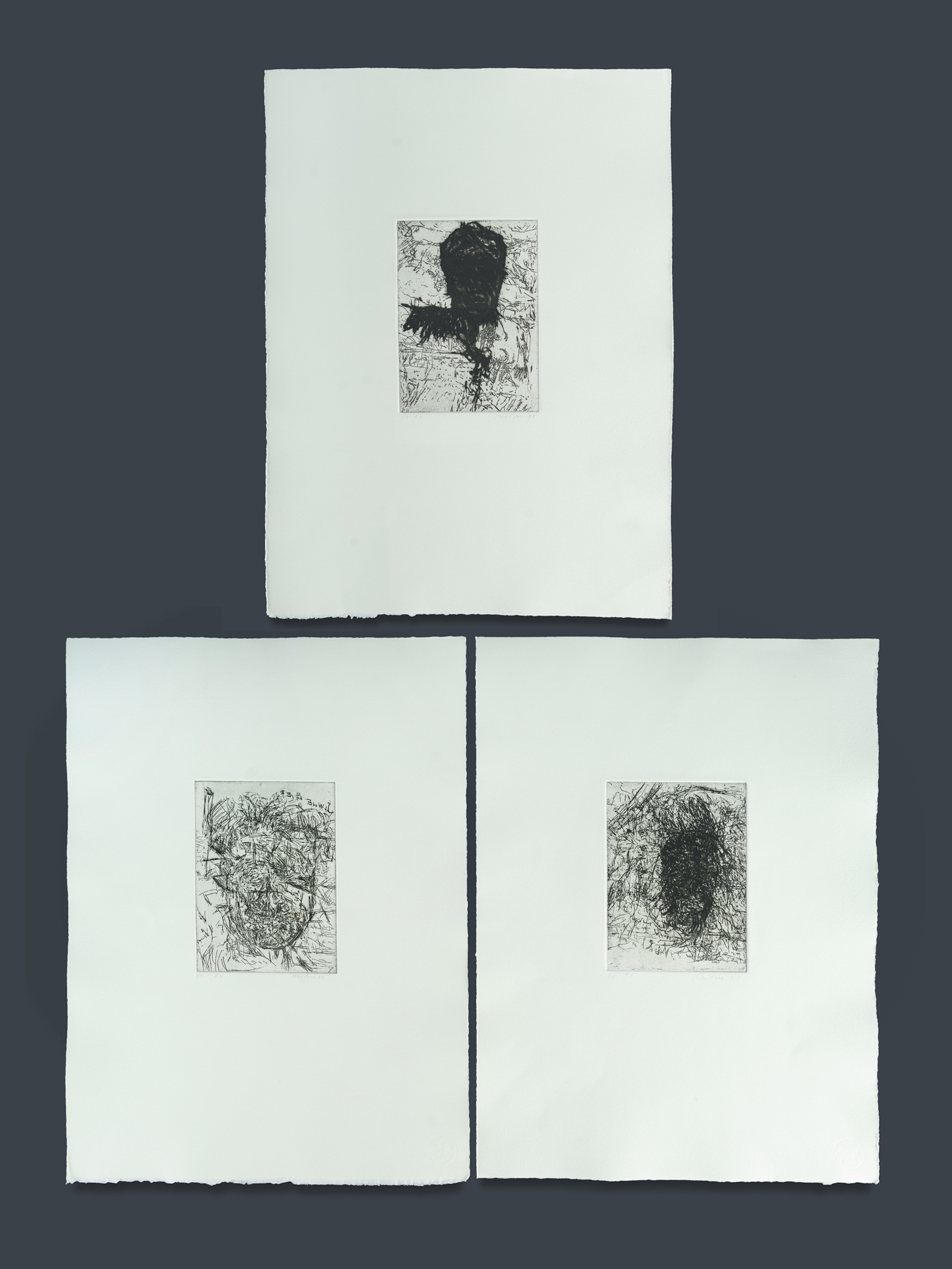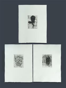 PARR, Mike (b.1945) (3) 'Organon 2 (nos. 5, 10 and 11)' 1998. From a series of 20 self portraits. Each signed lower right. Unframed. Etching (3) 1/15 19x14cm (plate) 53x39.5cm (sheet)Estimate $1,500-3,000