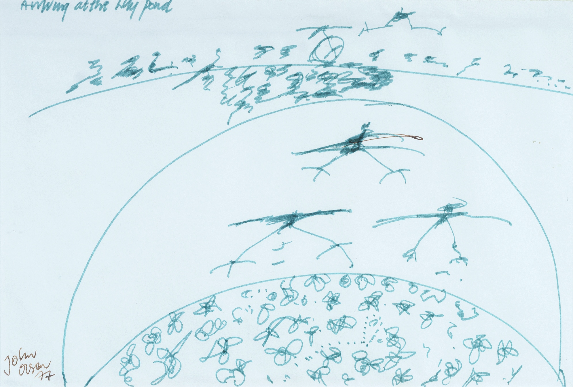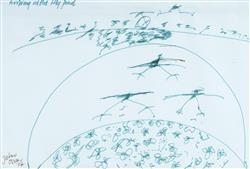 OLSEN, John (1928-2023) 'Arriving at the Lily Pond,' 1977. Signed and dated lower left. Pen & Ink 19.5x29cm OTHER NOTES: © John Olsen/Copyright Agency, 2025Estimate $1,500-2,500