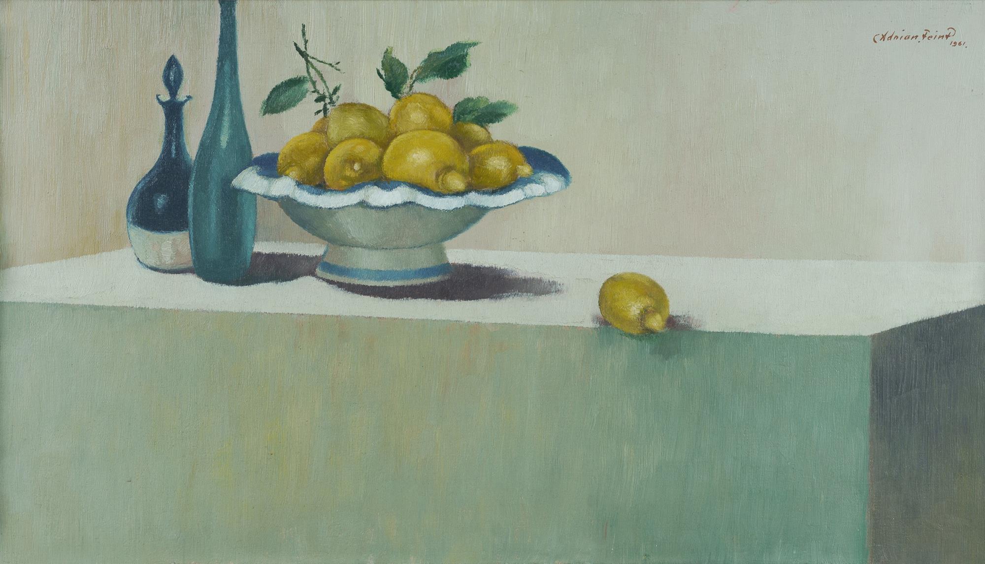 FEINT, Adrian (1894-1971) Still Life with Lemons and Bottles, 1961. Signed and dated upper right. Oil on Canvas 25.5x45.5cmEstimate $2,000-4,000