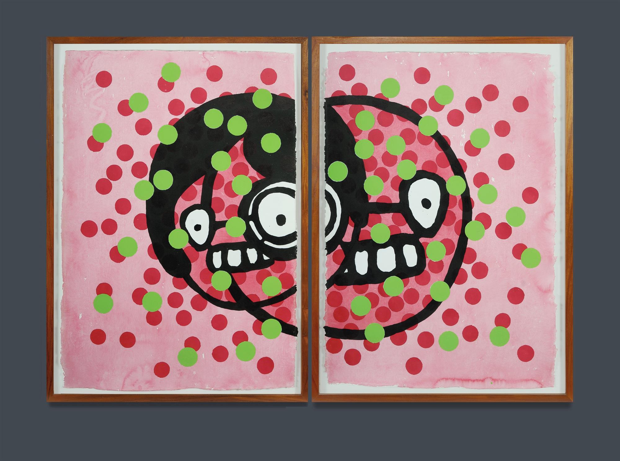 DANKO, Aleksander (Alex) (b.1950) 'John and Wendy Are Sick of You,' 2003. Signed and dated on back of works (concealed by framing) Ink & Acrylic on Handmade Paper 102x144cm (diptych) 102x72cm (each sheet) 113x162 (overall, framed)