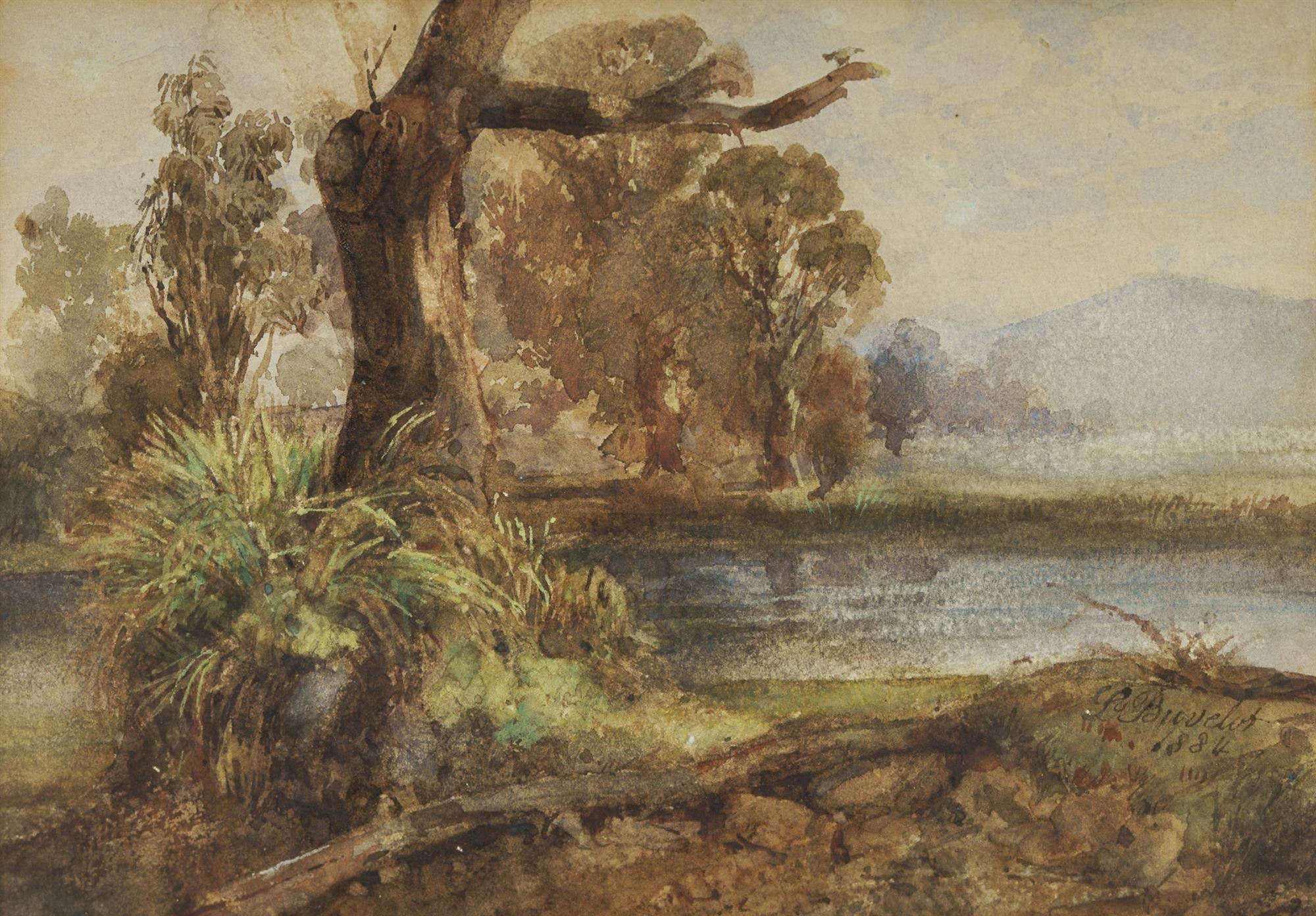 BUVELOT, Louis (1814-1888) Old Tree on Riverbank, 1884. Signed and dated lower right. W/Clr 19x27cmEstimate $1,000-2,000