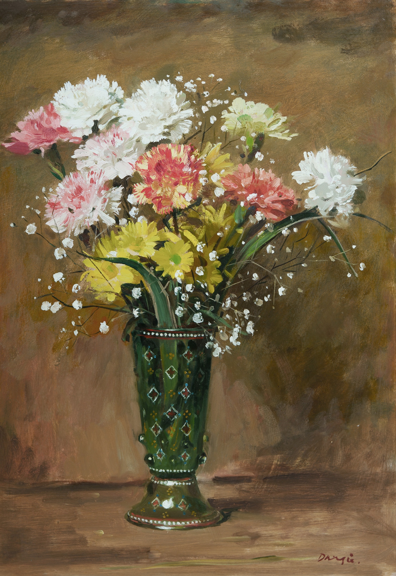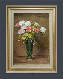 DARGIE, William (1912-2003) 'Carnations' Signed lower right. Oil on Board 55.5x38.5cmEstimate $1,000-1,500