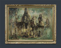 CHOO KENG KWANG (Singapore 1931-2019) Angkor Wat, 1964. Signed and dated lower left. Artist label verso. Oil on Canvas 74x100cmEstimate $3,000-5,000