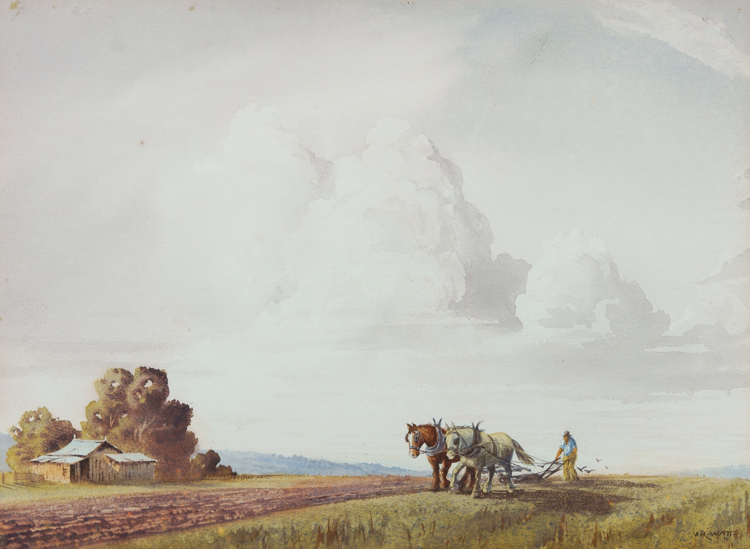 WATT, Victor Robert (1886-1970) 'Ploughing' Signed lower right. W/Clr 27x36cm