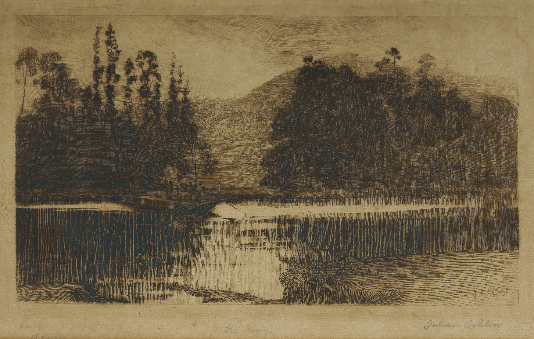 ASHTON, Julian Rossi (1851-1942) 'The Ferry,' 1893. Signed lower right. Etching 13.5x23cm