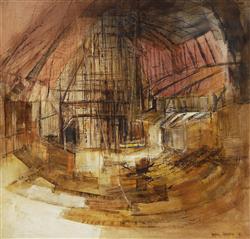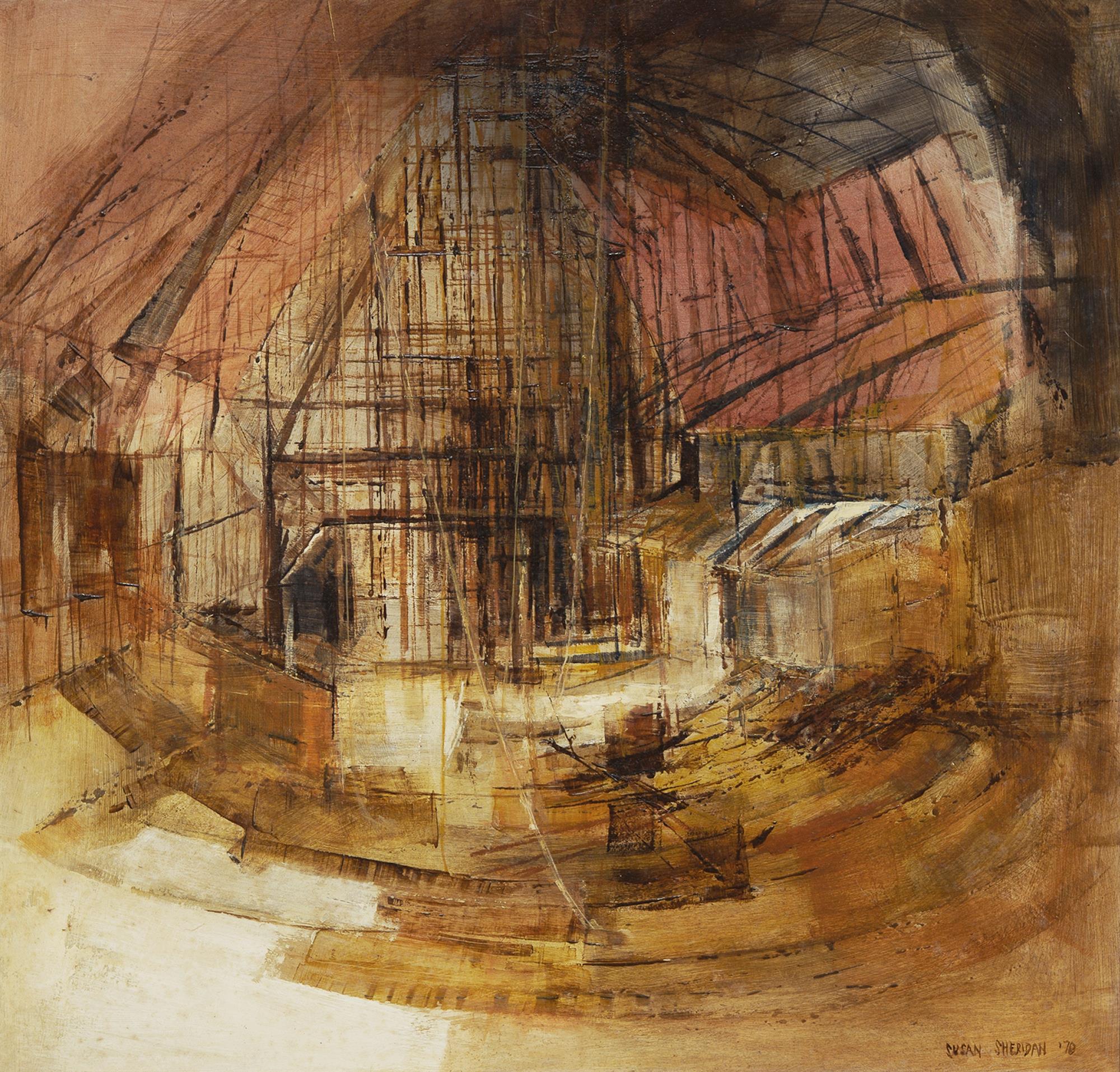SHERIDAN, Susan (b.1939) 'The Opera House,' 1970. Signed and dated lower right. Lennox Gallery, Sydney, label verso. Oil on Board 57.5x60cm (image) 71x73cm (frame)Estimate $100-200