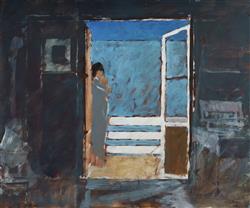 DAWS, Lawrence (b.1927) Mother and Baby on Balcony Signed lower right. Oil (?) on Canvas Paper 64x76.5cm PROVENANCE: Ken Hinds Cultural Heritage Collection, Qld.Estimate $800-1,500