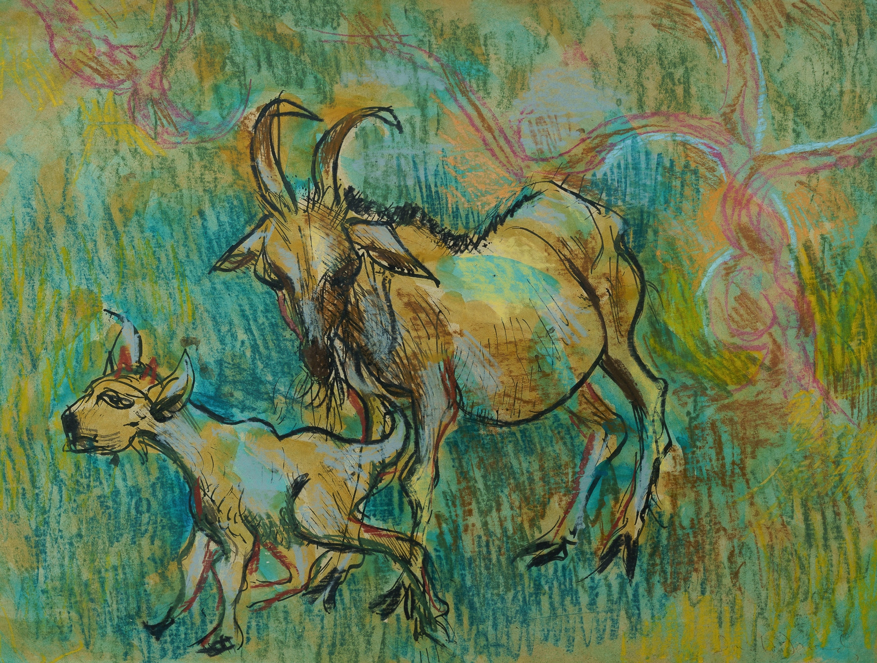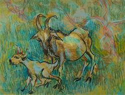 FRIEND, Donald (1915-1989) Goat and Kid Signed and dated indistinctly lower right. Mixed Media on Paper 37x49cm PROVENANCE: Ken Hinds Cultural Heritage Collection, Qld.Estimate $800-1,200