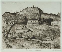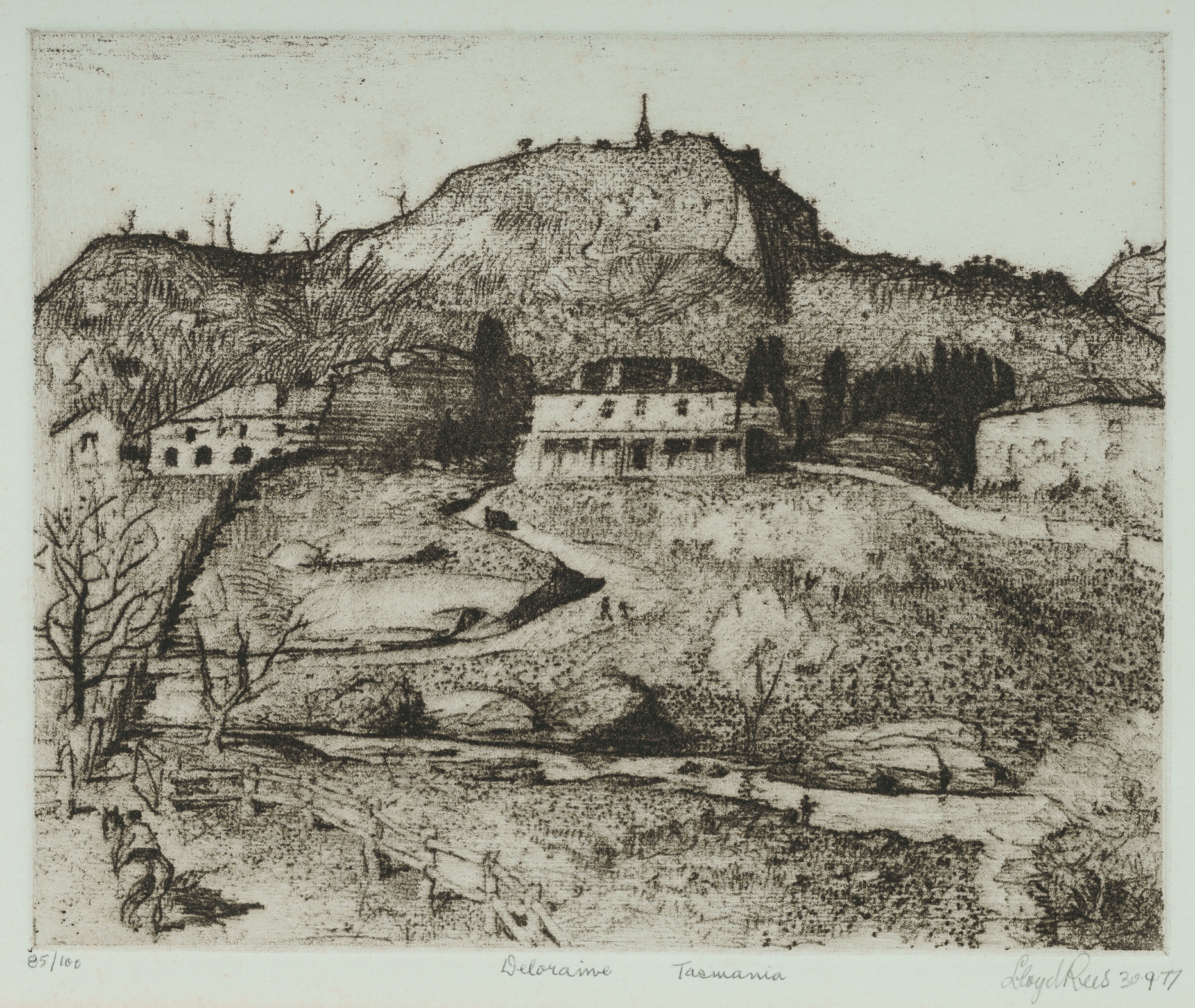 REES, Lloyd (1895-1988) 'Deloraine, Tasmania,' 1977. Signed and dated lower right. Etching 85/100 20x25cm PROVENANCE: Ken Hinds Cultural Heritage Collection, Qld. LITERATURE: Kolenberg, H., 'Lloyd Rees: Etchings and Lithographs,' The Beagle Press, Sydney, 1986, p.39 (#20)Estimate $200-300