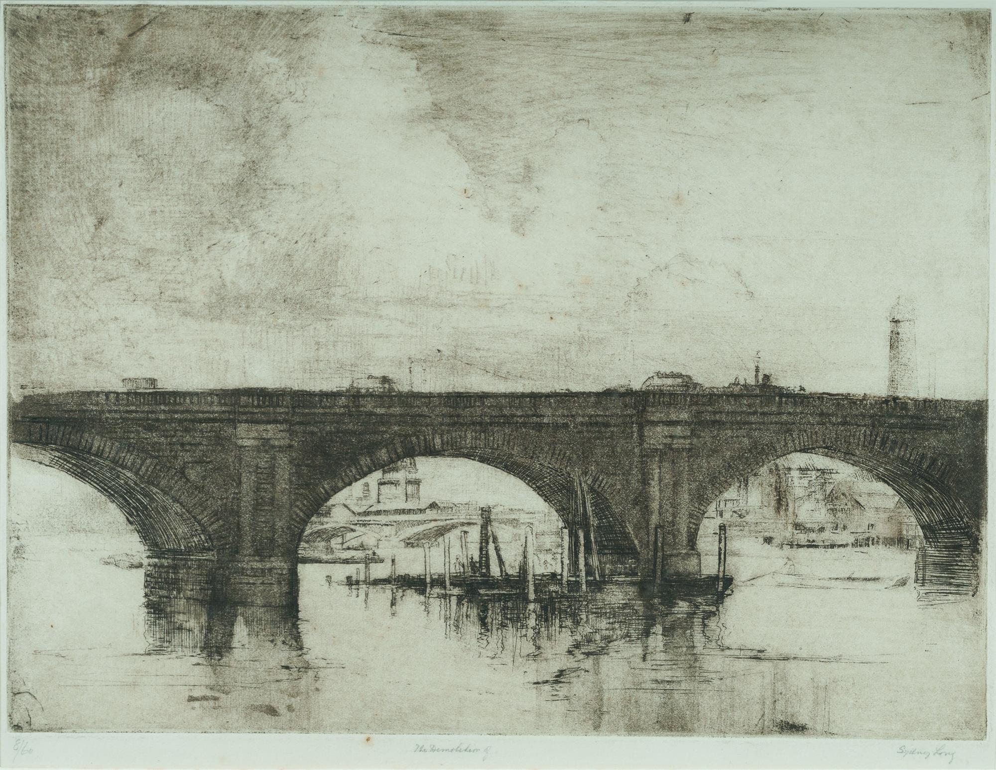 LONG, Sydney (1871-1955) 'The Demolition of Waterloo Bridge, London,' 1928. Signed lower right. Etching 8/60 26.5x35cm