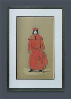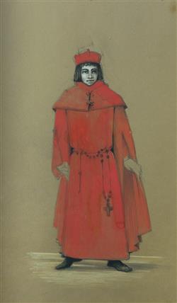 Attrib. SAINTHILL, Loudon (1918-1969) Costume Design - Cardinal No signature apparent. Gouache, Charcoal & Pastel 46.5x27.5cm PROVENANCE: Ken Hinds Cultural Heritage Collection, Qld.Estimate $100-200