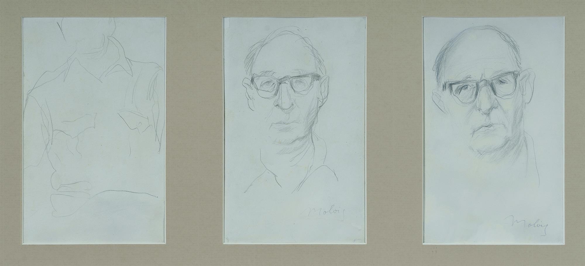 MOLVIG, Jon (1923-1970) (3) Russell Drysdale - 3 Portrait Studies, c.1964. Signed lower right. Pencil (3) 19.5x12cm (each image) PROVENANCE: Ken Hinds Cultural Heritage Collection, Qld. OTHER NOTES: The artist's portrait of Russell Drysdale (now in the collection of Queensland Art Gallery) was a finalist in the 1965 Archibald Prize.Estimate $300-500