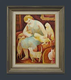 COLEMAN, William (Bill) (1922-1993) 'Marmalade and Friends' Signed lower left. Oil on Canvas on Board 50x40cm PROVENANCE: Davidson Auctions, 28th February 2009 (lot 46); private collection, NSW.Estimate $1,800-3,000