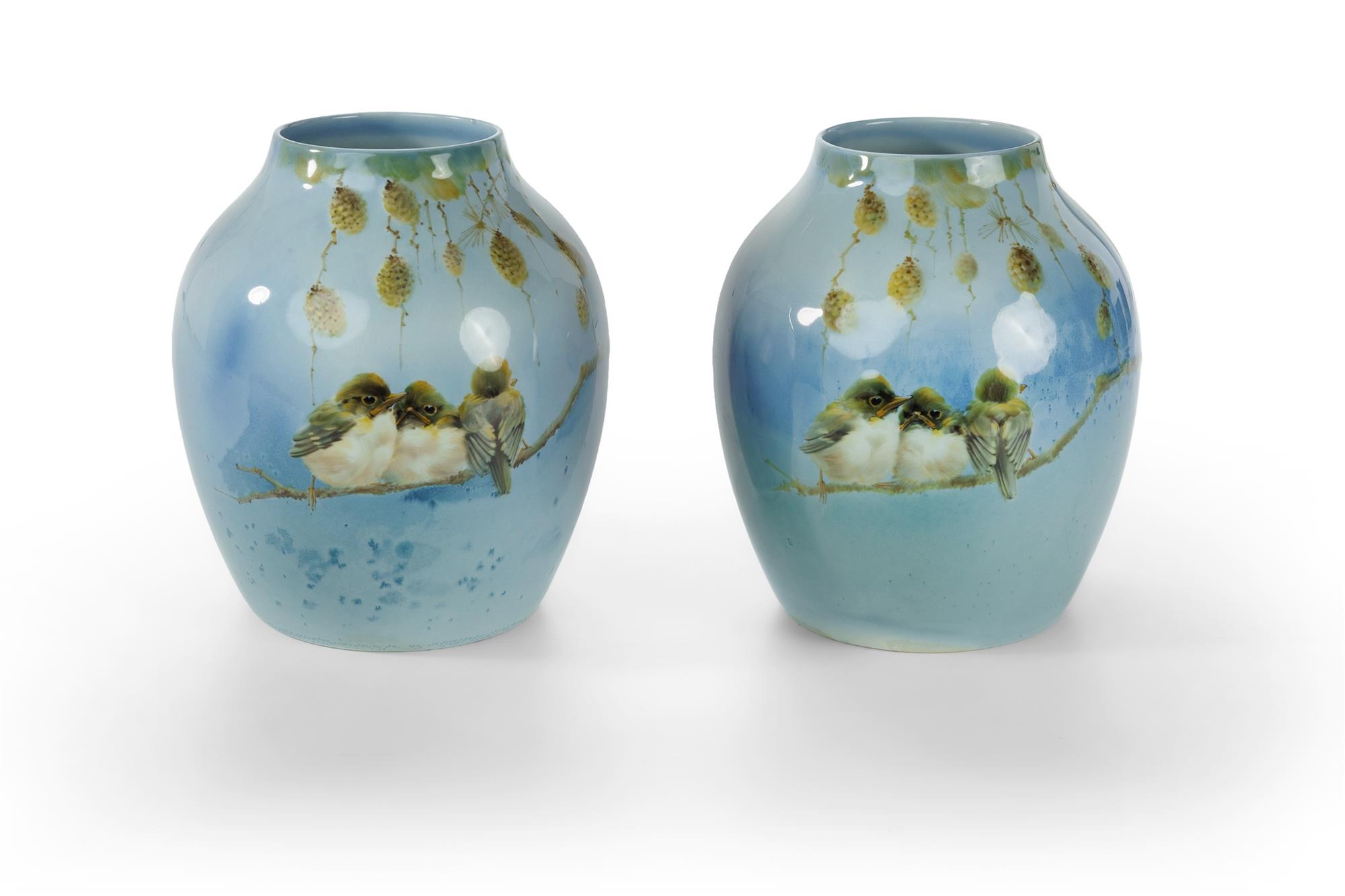 ALLEN, Harry Pr Matched Royal Doulton 'Titanian' Vases, 'Young Warblers' Hand decorated and signed by Harry Allen. H17.5cm (each)Estimate $1,000-2,000