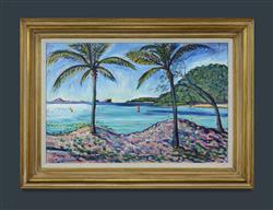 HUMPHRIES, Barry (1934-2023) 'Brampton Island [Qld]' 1989. Signed and dated lower left. Oil on Canvas 59.5x90.5cm PROVENANCE: Private collection, Sydney (gift from the artist)Estimate $8,000-12,000