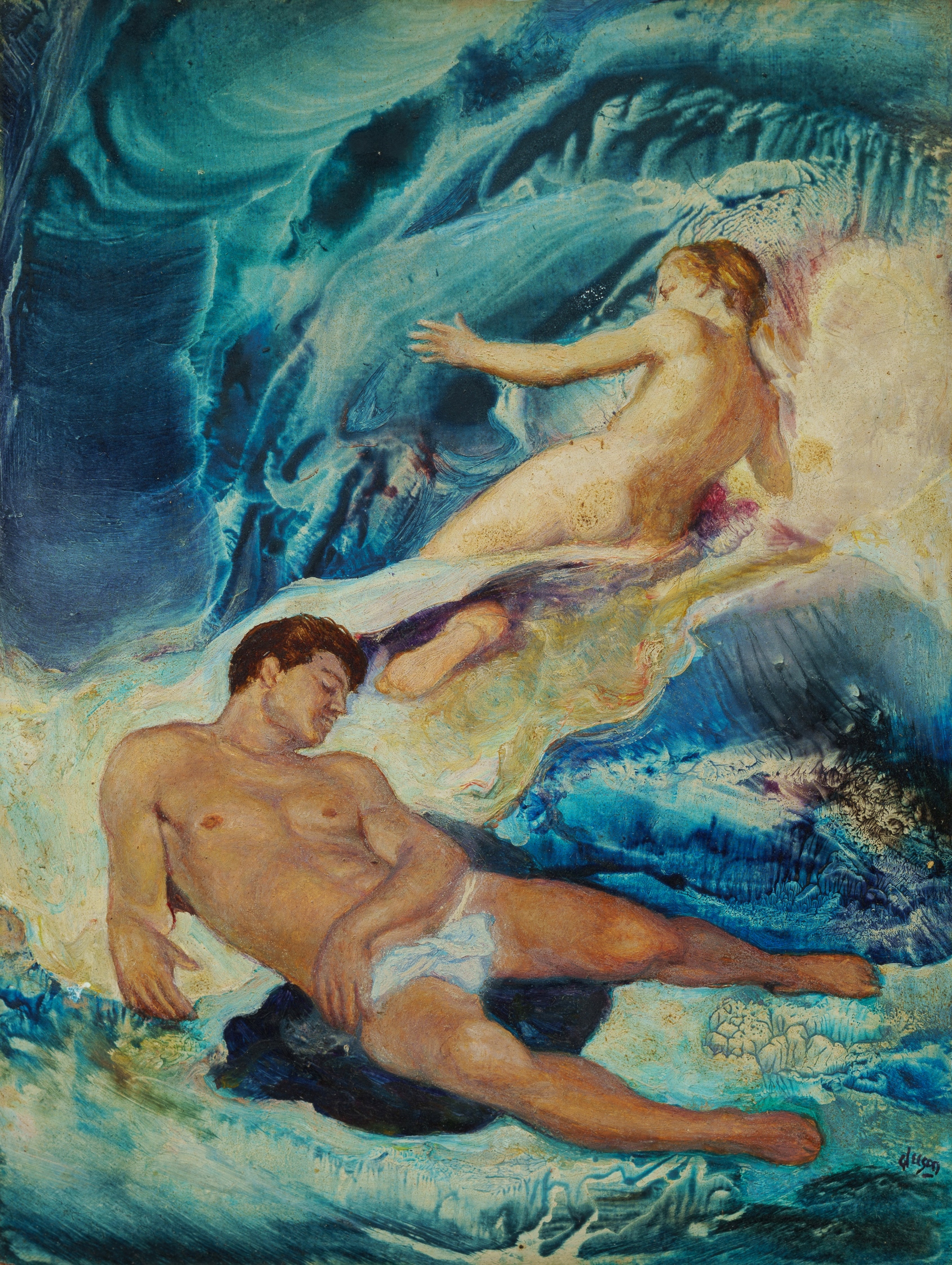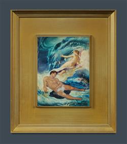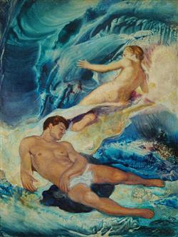 GLEESON, James (1915-2008) 'The Dream of Endymion,' 1963. Signed lower right. Titled and inscribed verso by the artist. Oil on Board 18x13.5cm PROVENANCE: Bruce Collection, SydneyEstimate $2,500-4,500