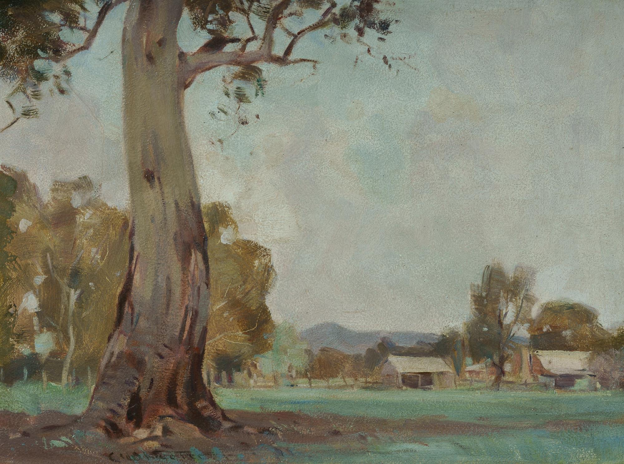 WHEELER, Charles Arthur (1880-1977) Rural Farm Signed lower left. Oil on Board 29x39cmEstimate $400-600