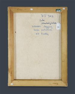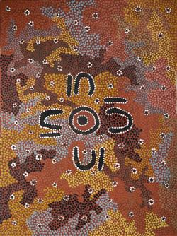 NAMPIJINPA, Lola Brown (Aboriginal b.1938) 'Women Digging Bush Potatoes, Mt Barkly' Stamped verso for 'Mt Allan Station, Central Australia. Acrylic on Canvas 61x46cm PROVENANCE: Ken Hinds Cultural Heritage Collection, Qld.Estimate $200-400