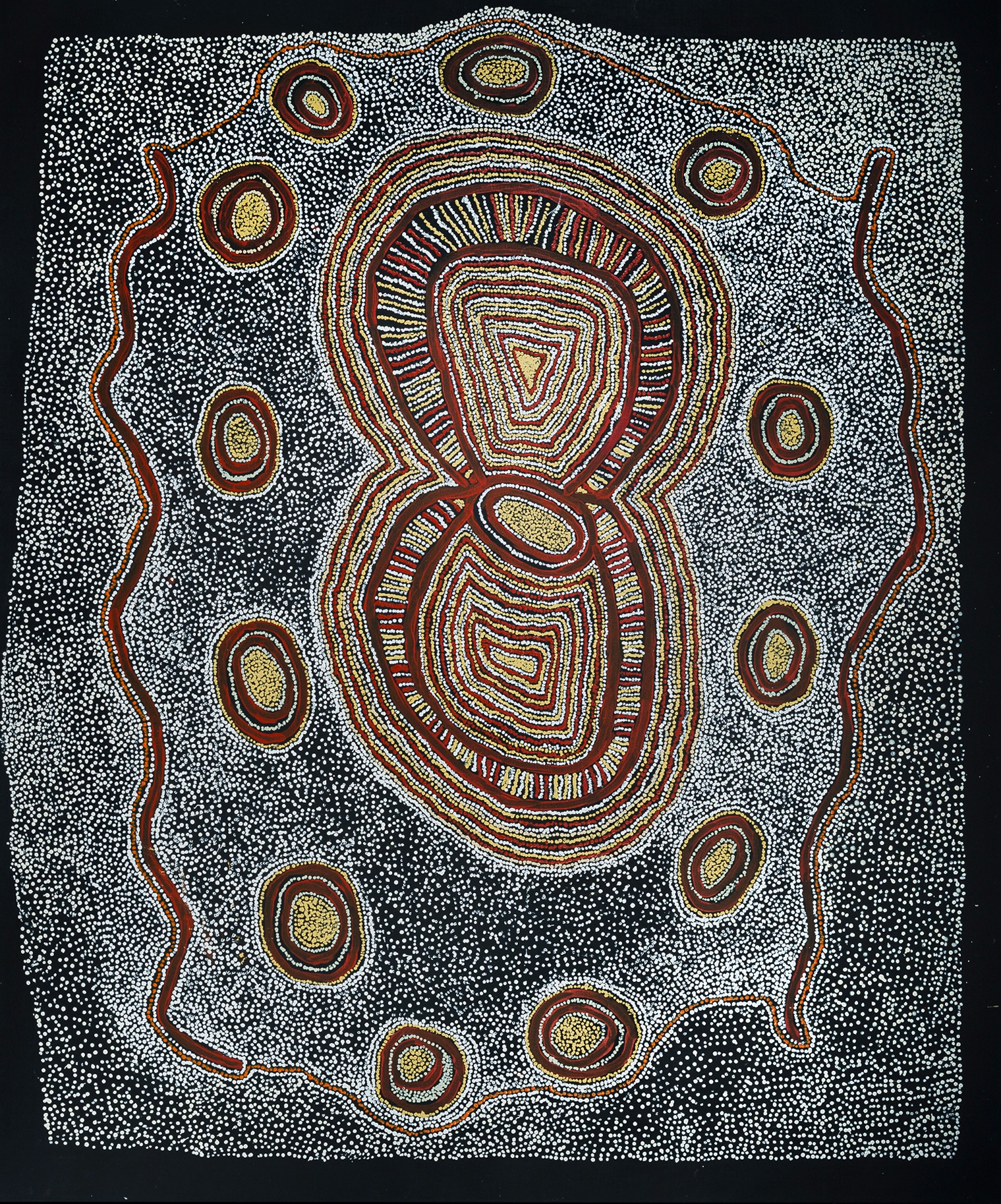 TJAPANANGKA, Paddy Lewis (Aboriginal 1928-2011) Untitled, 2006. Acrylic on Linen 183x153cm PROVENANCE: Yanda Aboriginal Art (stamp verso), cat #200603; Ken Hinds Cultural Heritage Collection, Qld.Estimate $3,000-5,000