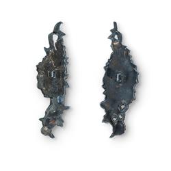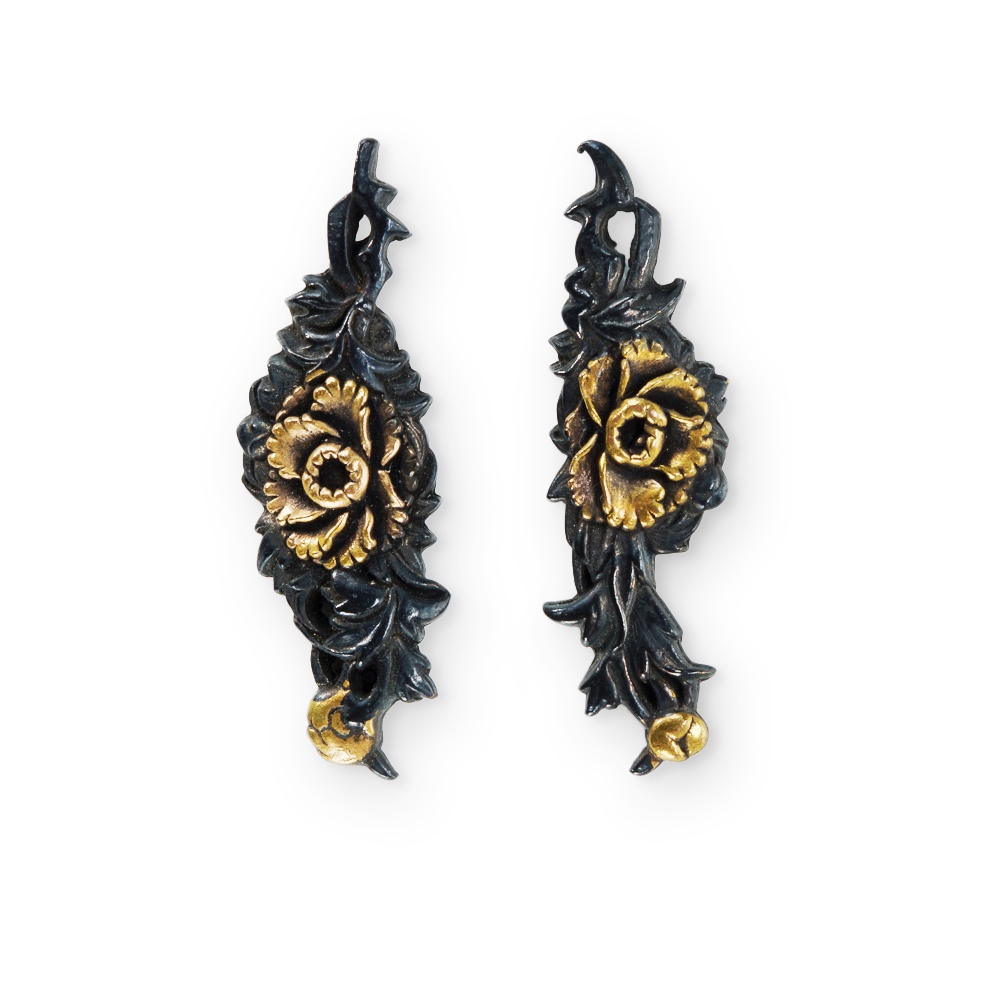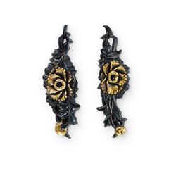 Pr Edo Period Shakudo Menuki Floral design in cast copper alloy (shakudo), with with gilt highlights. (L4.5cm)Estimate $150-250