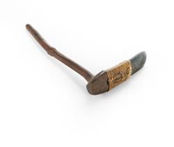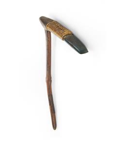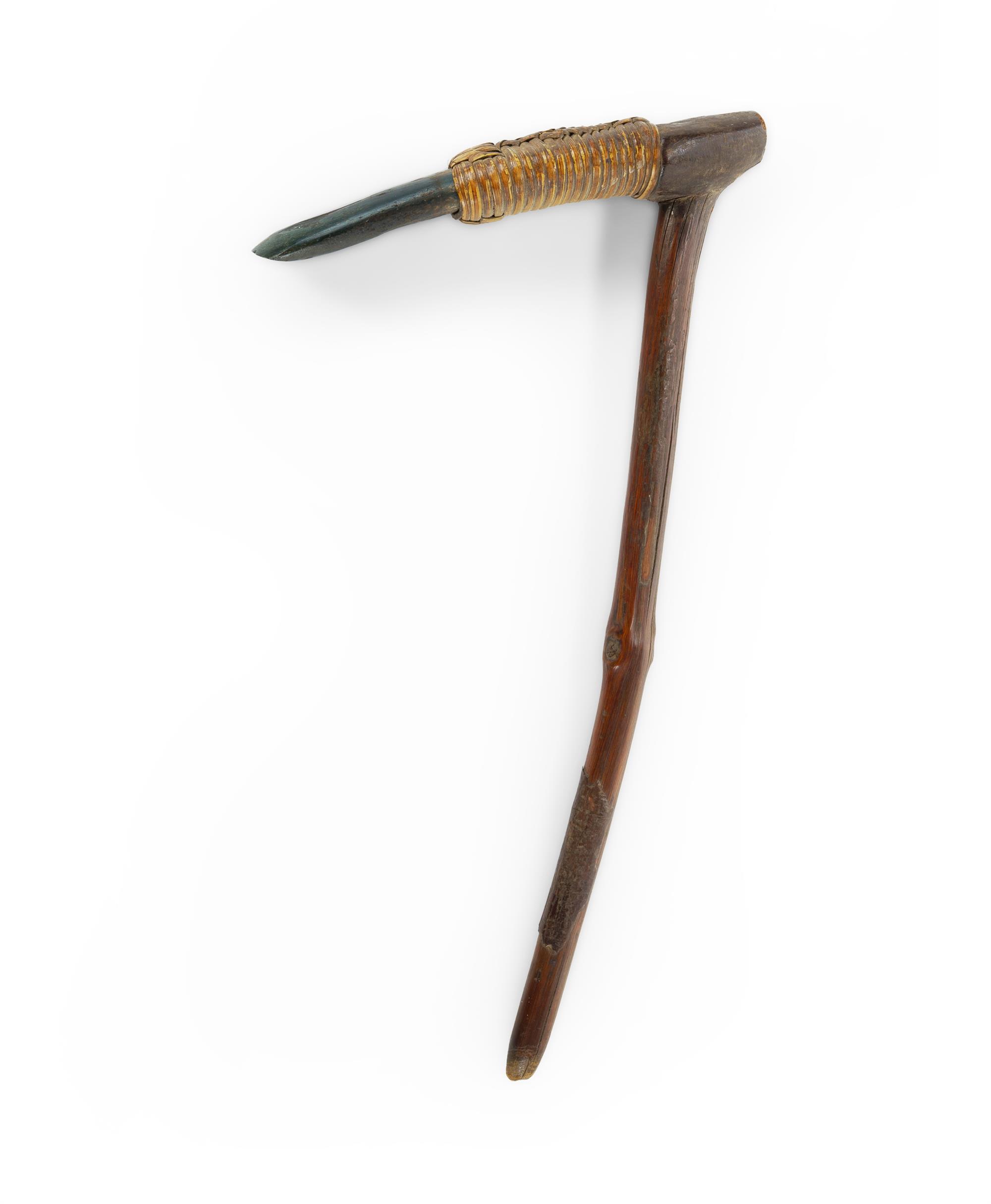 Papua New Guinea Adze Polished stone blade bound with cane to a wooden shaft. (L52cm)