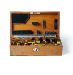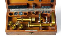 Late 19th C Carl Zeiss Microscope Fitted case with accessories. Serial No.12926. Zeiss production lists indicate that this instrument was sold in 1888 to Professor Jean Baptiste Carnoy (1836-1899), R.C. scientist-cleric at Louvain University, in the field of cytology. 32.5x16x10cm (case)