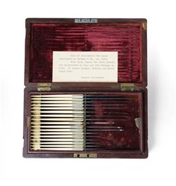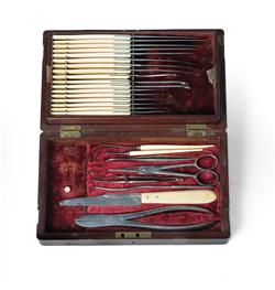 Regency Period Case of Surgical Instruments By Savigny & Co. Ivory handles. In a brass bound two-tier velvet-lined case. NB: ivory export restrictions. 24x13.5x6cm (case)