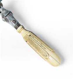 Two 19th C Vaginal Speculae Weiss's 'improved speculum vagina,' steel with chequered ivory handle, c.1860s, and a folding, 4 blade example. NB: ivory export restrictions.