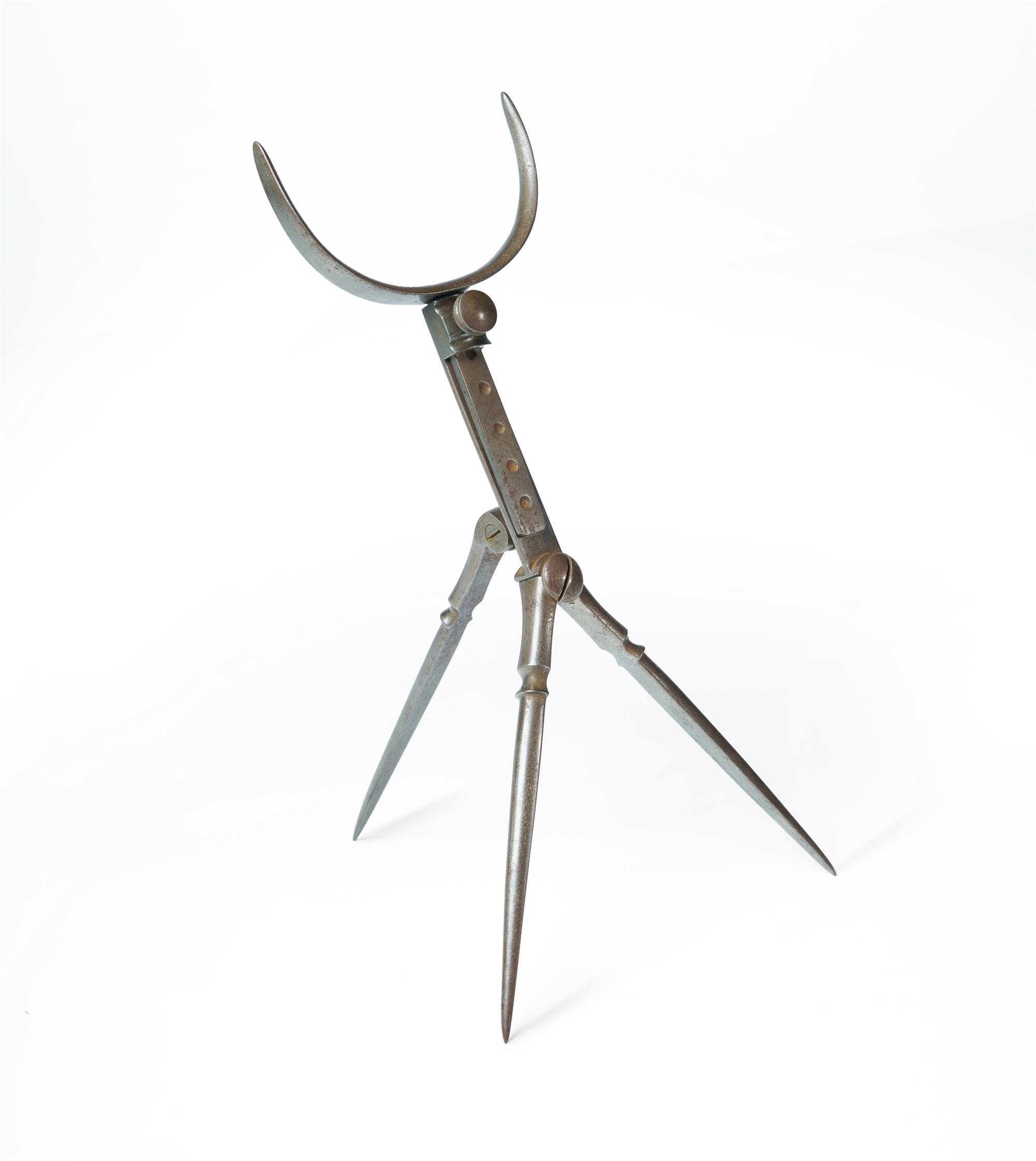 Very Rare 19th C Post Mortem Head Rest Adjustable folding tri-pod design, likely by Thompson. (L30cm) PROVENANCE: Collection Late Kenneth F. Russell (1911-1987), Professor of Anatomy and Medical History, University of Melbourne.Estimate $500-800